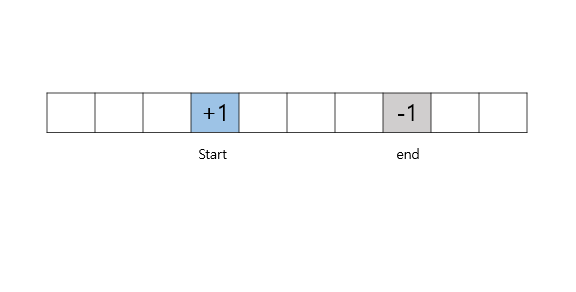 2번 과정에서 해둔 start, end 체크를 바탕으로 모든 구간에 시청자수를 기록합니다.