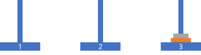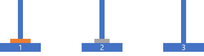 N = 2 : 시작 탑에서 보조 탑으로 1 옮기기 -> 시작 탑에서 끝 탑으로 2 옮기기 -> 보조 탑에서 끝 탑으로 1 옮기기