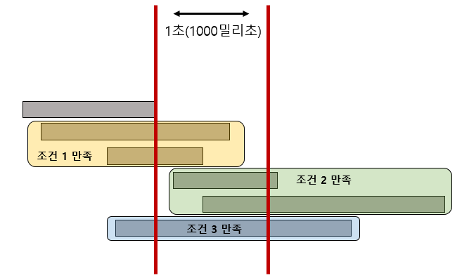 a. 다른 로그의 시작시간이 범위안에 있는 경우 : end_time[i] < start_time[j] < end_time[i] + 1000