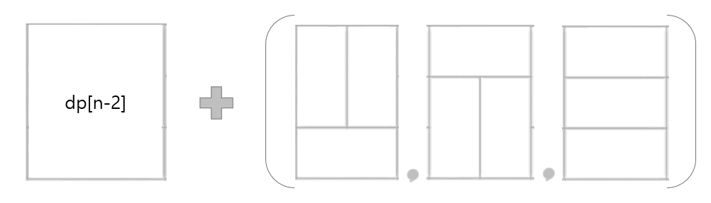 이 세 가지 종류가 바로 직전의 것(dp[n-2])에 추가된 것 이 1번의 경우입니다.