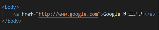 태그 내부의 텍스트는 해당 링크를 누를 수 있게 해주는 부분이 된다. 한글 파일 등에서 파란색으로 줄그어져있는 링크를 생각하면 쉽다.