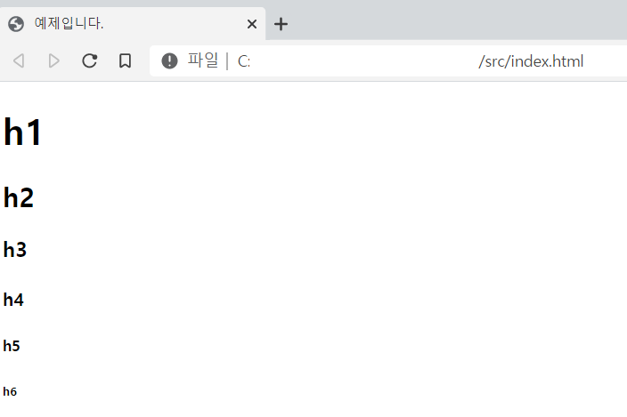 제목을 보여주는 태그이다. h뒤의 숫자가 커질수록 작은 제목이 된다. 사이트의 구성에 따라 가장 큰 <h1>부터 가장 작은 <h6>까지 사용할 수 있다. 순서대로 잘 구성된 제목 태그가 해당 페이지의 판단기준 중 하나이므로, 순서대로 잘 ㅏ사용하는 것이 중요하다. 가장 큰 <h1> 태그는 하나의 웹 페이지에 한번만 사용하는 것이 좋다.