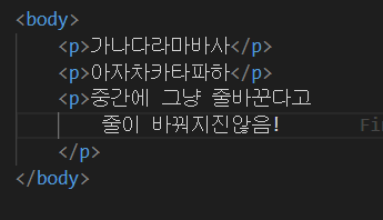 단락을 출력하는 태그이다. 해당 태그로 감싼 문장이 하나의 단락으로써 출력된다. 새로운 <p> 태그마다 자동으로 줄바꿈 되어 출력된다.