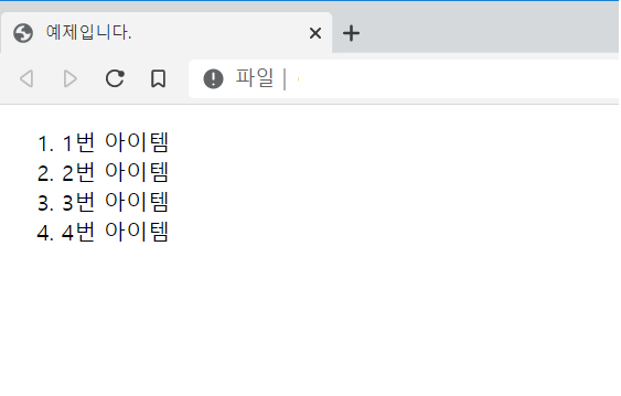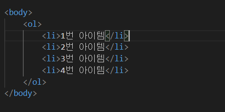 <ol>은 "ordered list"의 약자로 순서가 있는 리스트 컨테이너를 만드는 태그이다. <li>와 마찬가지로 해당 태그의 내부에 <li> 태그를 사용하여 리스트의 항목을 추가할 수 있다.