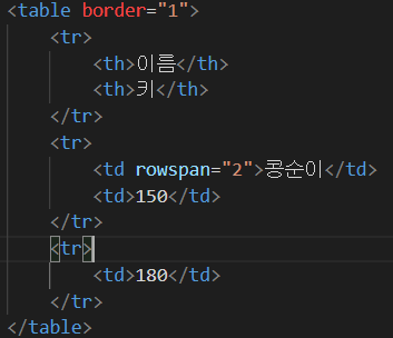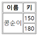또한 각 행마다 "colspan", "rowspan" 속성을 추가하여 행 또는 열 방향으로 테이블의 데이터를 병합할 수도 있다.