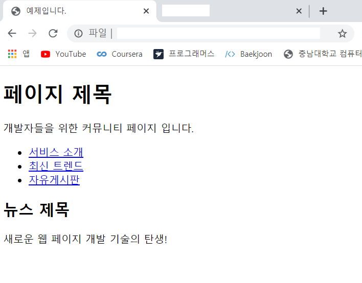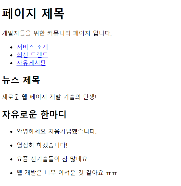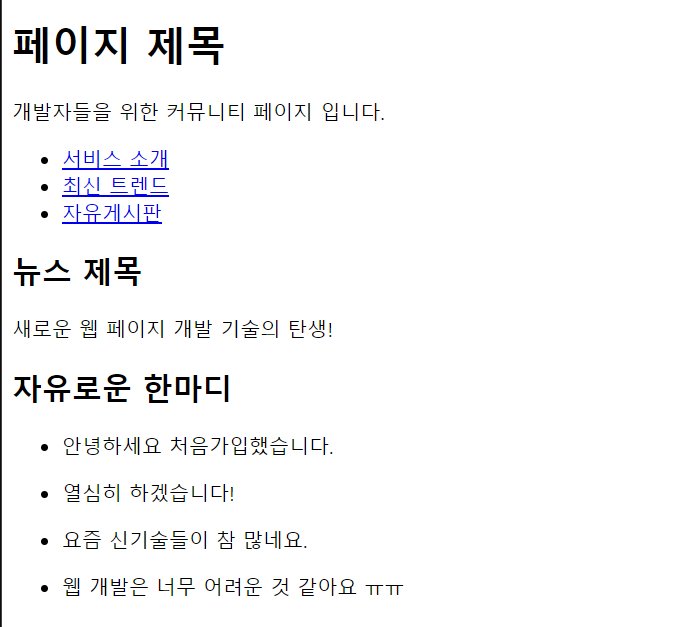 하지만 CSS를 따로 주지 않으면, 그냥 태그를 사용한 것과 동일한 출력을 보여준다.