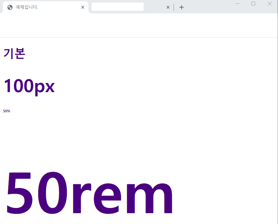 2. "rem": 루트 요소(html 요소)에 지정된 크기를 기준으로 배수곱 하는 단위