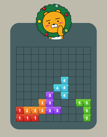 1 x 1 크기의 정사각형으로 이루어진 N x N 크기의 보드 위에 이 블록들이 배치된 채로 게임이 시작된다. (보드 위에 놓인 블록은 회전할 수 없다). 모든 블록은 블록을 구성하는 사각형들이 정확히 보드 위의 사각형에 맞도록 놓여있으며, 선 위에 걸치거나 보드를 벗어나게 놓여있는 경우는 없다.