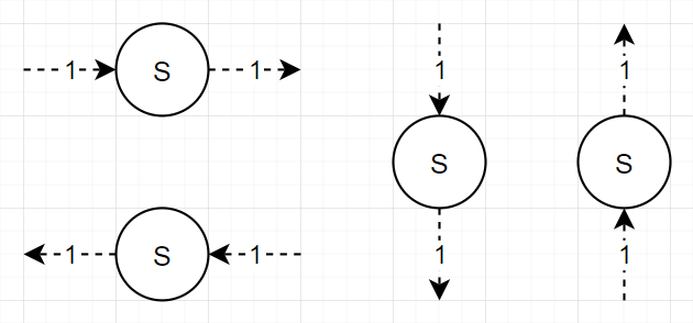 - 빛이 "S"가 써진 칸에 도달한 경우, 직진합니다.