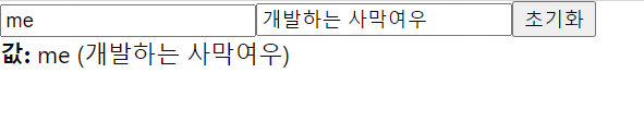 위 코드를 실행하고 초기화 버튼을 클릭하면, 사진과 같이 focus가 name을 입력하는 input에 올라간 것을 확인할 수 있다.