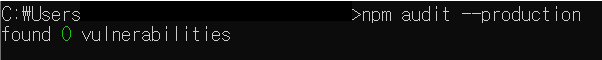 방법은 간단하다. 단순히 package.json을 아래와 같이 수정해주면 된다. 이렇게 수정해주고 npm audit --production으로 확인해보면, 모든 취약점이 사라져있음을 볼 수 있다. (사실 그래도 npm audit만을 치면 취약점이 있다고 그대로 뜬다. 하지만 어쩔 수 없단다.)