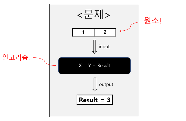 위의 정의에서도 볼 수 있듯이, 알고리즘이란 어떤 계산을 실행하기 위한 단계적 절차를 의미하고, 모든 계산에는 계산이 되어야 할 원소(element)가 존재합니다. 매우 간단하고도 당연한 말입니다.