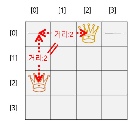 if(board[b] == pos) return false; // 위 퀸과 직선이면 안되고,