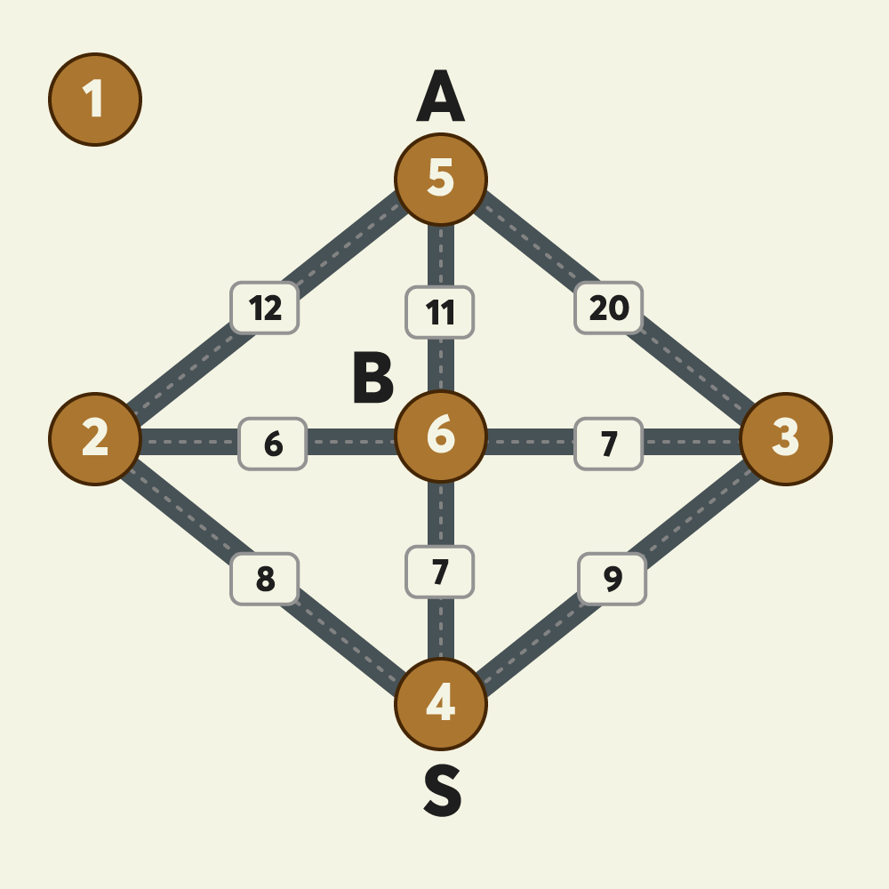 - 지점 s, a, b는 1 이상 n 이하인 자연수이며, 각기 서로 다른 값입니다.