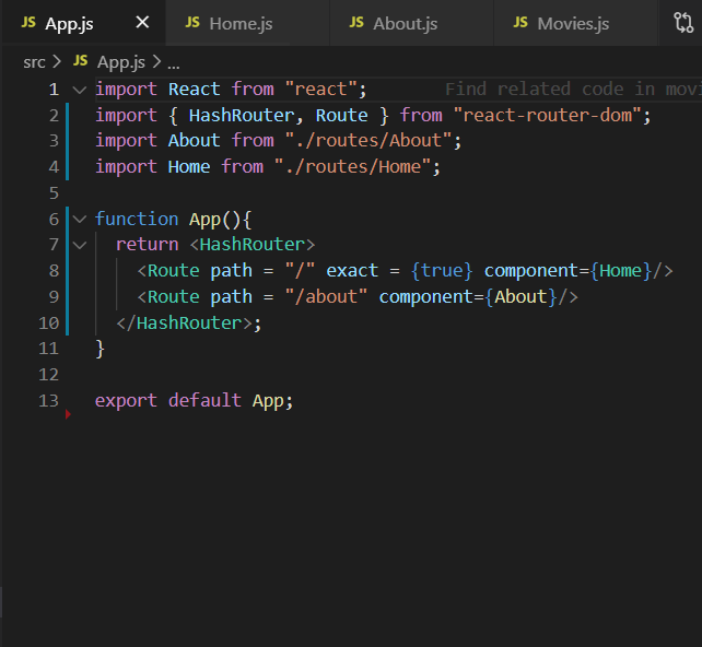 라우터 중에서도 HashRouter를 사용해 보았고, 다음과 같이 url에 따라 두 가지 컴포넌트를 가져와 사용할 수 있다.